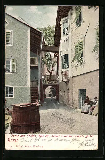 AK Brixen, Partie aus Stufels, aus der Mauer herauswachsende Birke