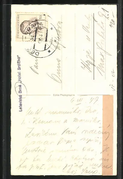 gelaufen 1949, rückseitig Klebe- und Papierreste, Eckknick re. unten, guter Zustand