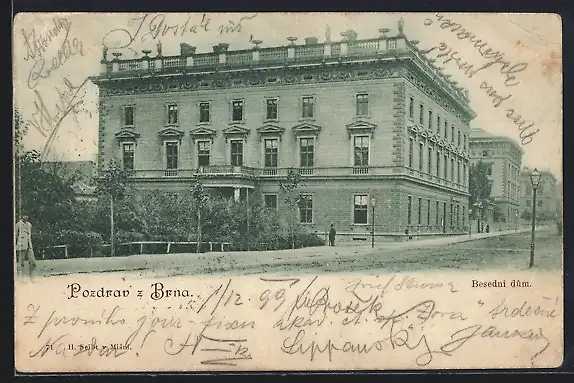 alte Ansichtskarte, gelaufen 1899, Briefmarke entfernt, rückseitig Oberflächenschaden, Eckknicke li. oben u. re., guter Zustand