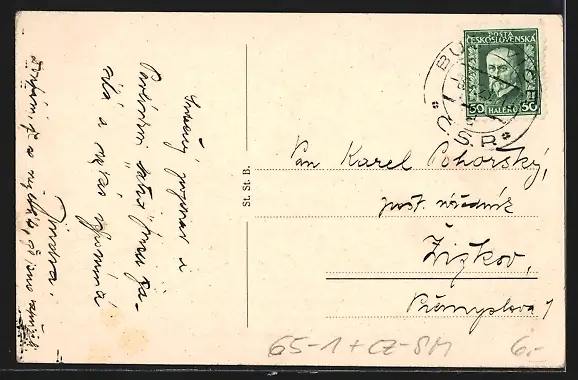 Personenbezogene Daten auf der Rückseite der Karte wurden durch blauen Textmarker unkenntlich gemacht. Die blauen Stellen sind auf die Vorderseite durchgeweicht und wirken sich negativ auf das Postkartenfoto aus