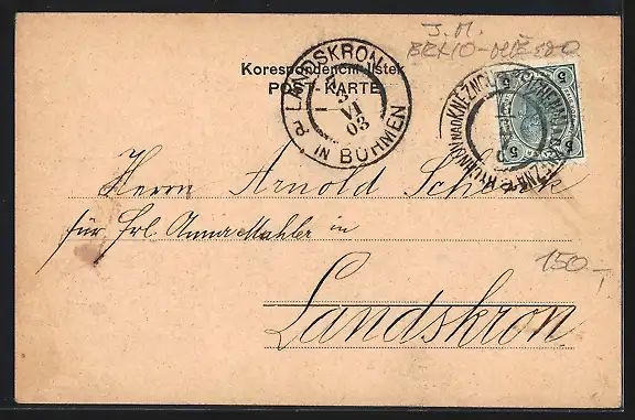 gelaufen 1903, Eckknicke oben, Stempelspur, guter Zustand