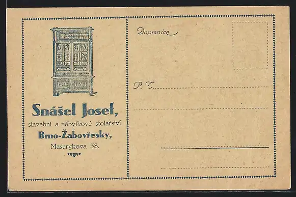 AK Brno-Zabovresky, Snasel Josef, stavebni a nàbytkovè stolarstvi
