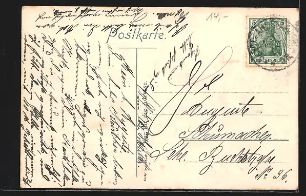 alte Ansichtskarte, gelaufen 1907, Eckknick oben re., guter Zustand