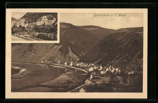AK Brodenbach a.d. Mosel, Gesamtansicht, Gasthof zur Post