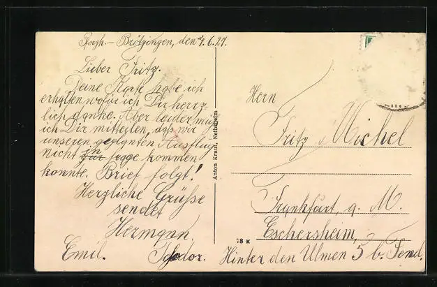 alte Ansichtskarte, gelaufen, Briefmarke entfernt, guter Zustand