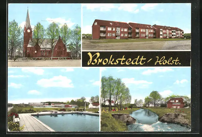 AK Brokstedt /Holst., Kirche, Freibad, Wohnhäuser