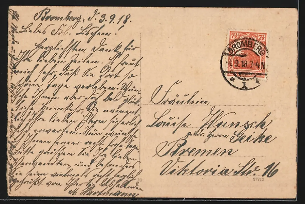 alte Ansichtskarte, gelaufen 1918, min. Einriss obere Kante, sonst guter Zustand