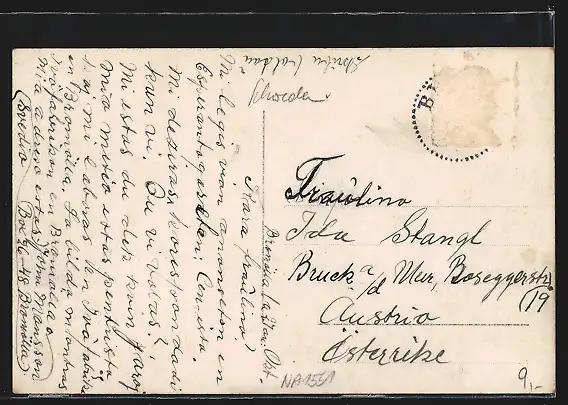 alte Ansichtskarte, gelaufen, Briefmarke entfernt, guter Zustand