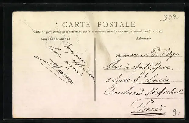 Personenbezogene Daten auf der Rückseite der Karte wurden durch blauen Textmarker unkenntlich gemacht. Die blauen Stellen sind auf die Vorderseite durchgeweicht und wirken sich negativ auf das Postkartenfoto aus