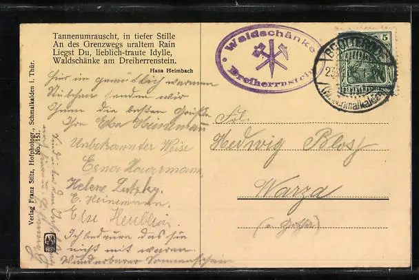 AK Brotterode i. Thür., Gasthaus-Waldschänke Dreiherrnstein