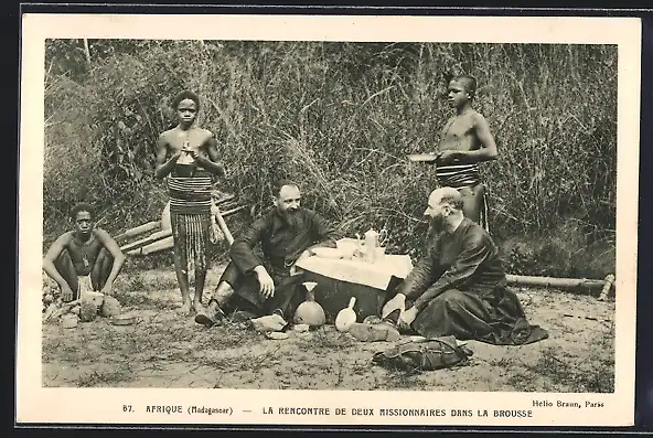 AK Brousse, La Rencontre de Deux Missionnaires dans la Brousse