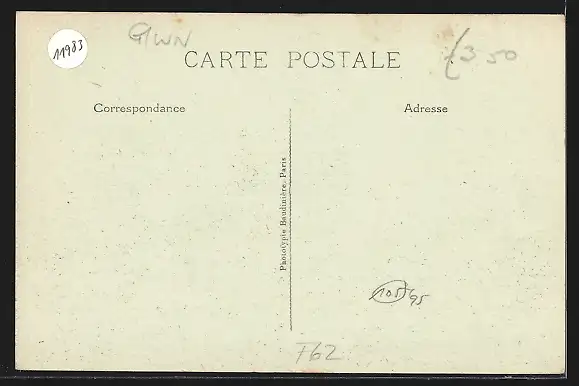 Personenbezogene Daten auf der Rückseite der Karte wurden durch blauen Textmarker unkenntlich gemacht. Die blauen Stellen sind auf die Vorderseite durchgeweicht und wirken sich negativ auf das Postkartenfoto aus