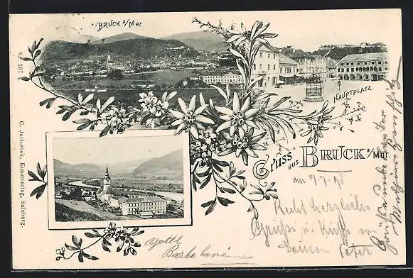 AK Bruck a. M., Ortsansicht, Hauptplatz und Stift
