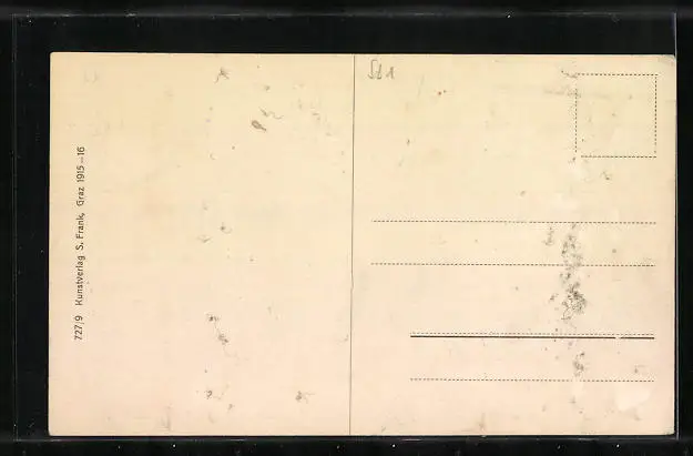 alte Ansichtskarte, ungelaufen, Eckknick li. oben, rückseitig Klebe- und Papierreste, rückseitig Oberflächenschaden, guter Zustand