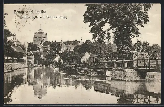 AK Bruck a. d. Leitha, Leitha-Idylle mit Schloss Prugg