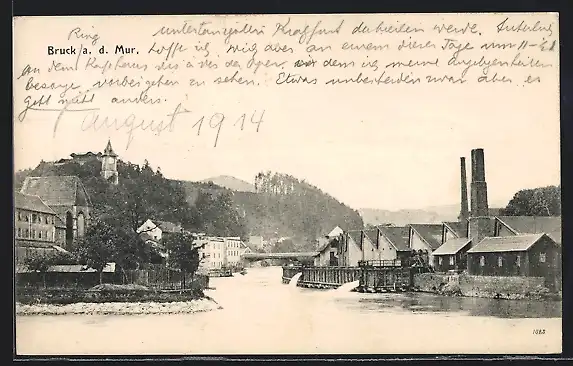 AK Bruck a. d. Mur, Ortspartie am Fluss