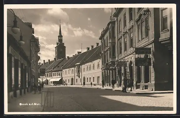 AK Bruck a. d. Mur, Strassenansicht mit Geschäften