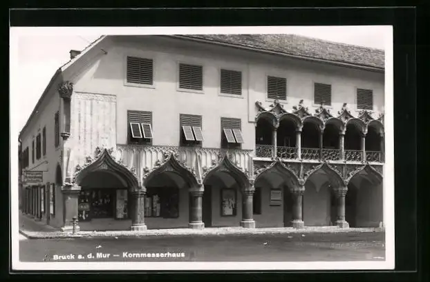 AK Bruck a. d. Mur, Strassenpartie am Kornmesserhaus
