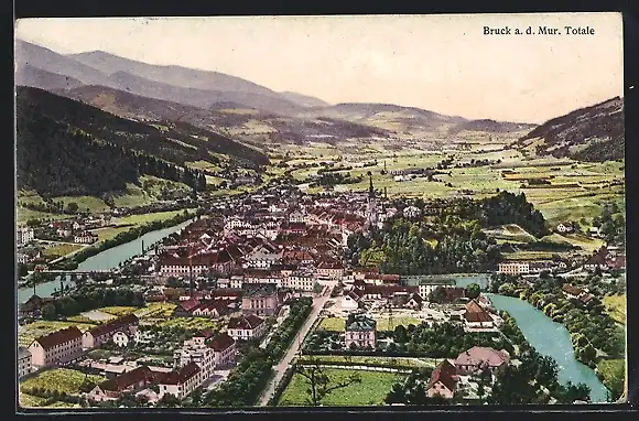 AK Bruck a. d. Mur, Totalansicht aus der Vogelschau
