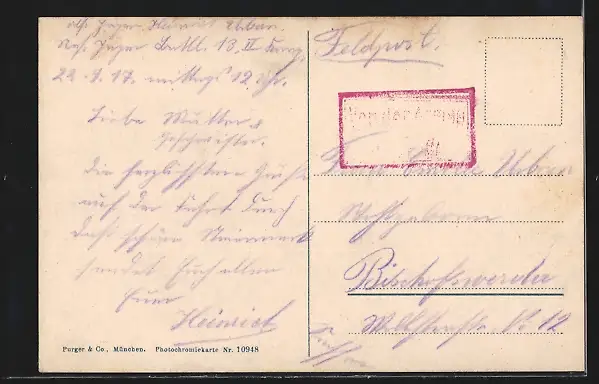 alte Ansichtskarte, gelaufen 1917, guter Zustand
