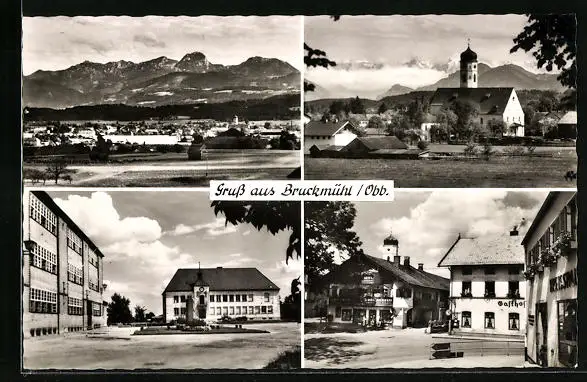 AK Bruckmühl / Obb., Kirche, Gesamtansicht, Denkmal, Gasthof
