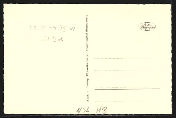 Personenbezogene Daten auf der Rückseite der Karte wurden durch blauen Textmarker unkenntlich gemacht. Die blauen Stellen sind auf die Vorderseite durchgeweicht und wirken sich negativ auf das Postkartenfoto aus