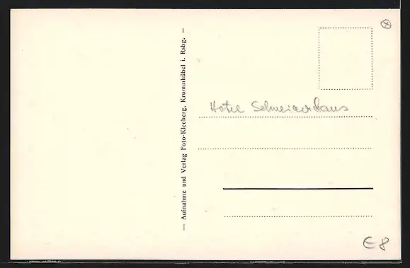 Personenbezogene Daten auf der Rückseite der Karte wurden durch blauen Textmarker unkenntlich gemacht. Die blauen Stellen sind auf die Vorderseite durchgeweicht und wirken sich negativ auf das Postkartenfoto aus