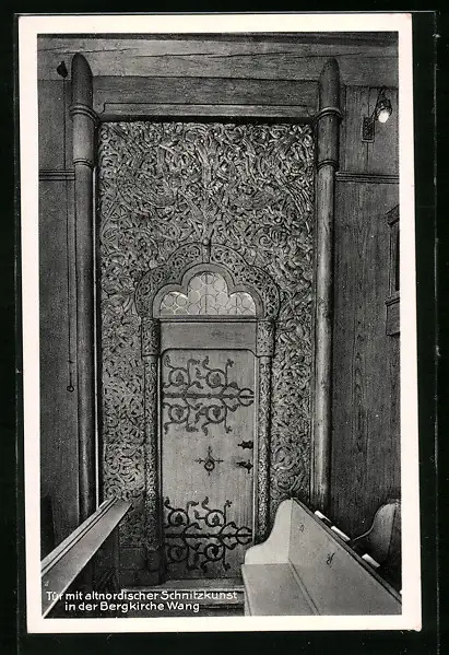 AK Brückenberg i. Rsgb., Tür mit altnordischer Schnitzunst in der Bergkirche Wang