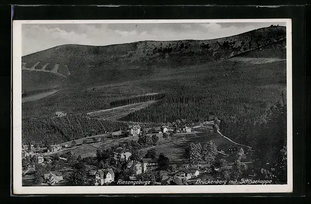 AK Brückenberg im Riesengebirge, Totalansicht mit der Schneekoppe