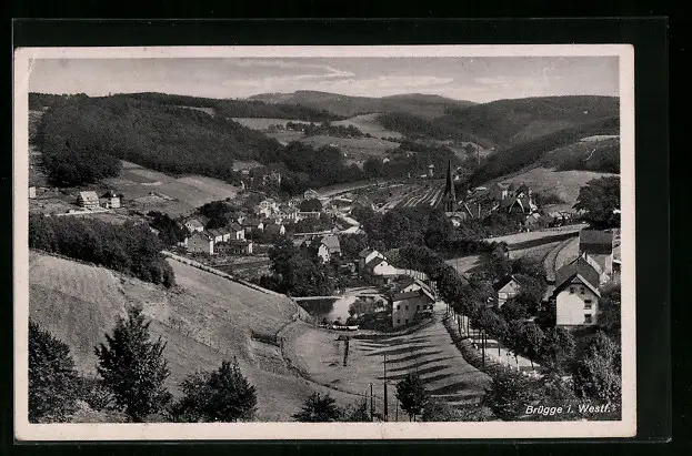 AK Brügge i. Westf., Ortsansicht ins Tal