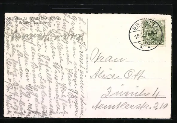 AK Brünig-Hasliberg, Kurhaus Asserwendl im Winter