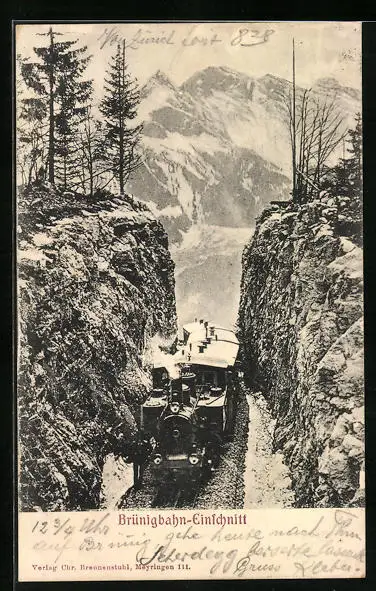 AK Brünigbahn, Bergbahn im Einschnitt, Alpenpanorama