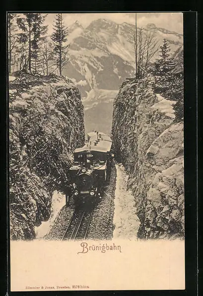 AK Brünigbahn in einem Bergdurchbruch