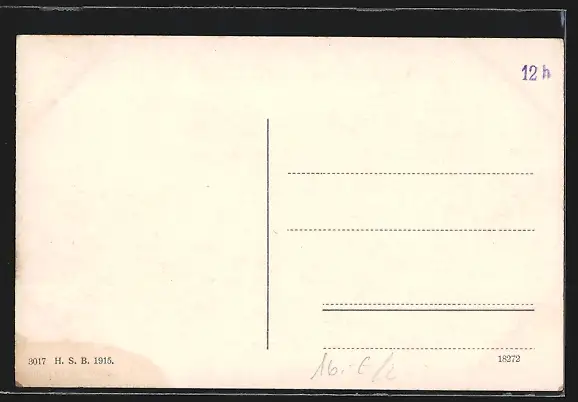 Personenbezogene Daten auf der Rückseite der Karte wurden durch blauen Textmarker unkenntlich gemacht. Die blauen Stellen sind auf die Vorderseite durchgeweicht und wirken sich negativ auf das Postkartenfoto aus