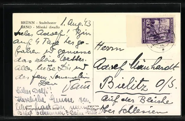 AK Brünn, Blick auf das Stadttheater