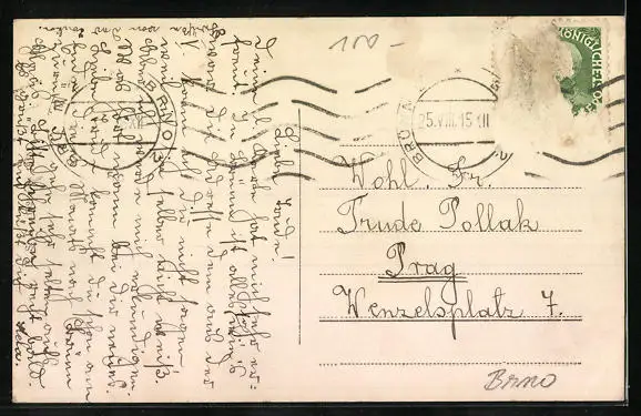 gelaufen 1915, Briefmarke entfernt, Eckknick unten li., guter Zustand