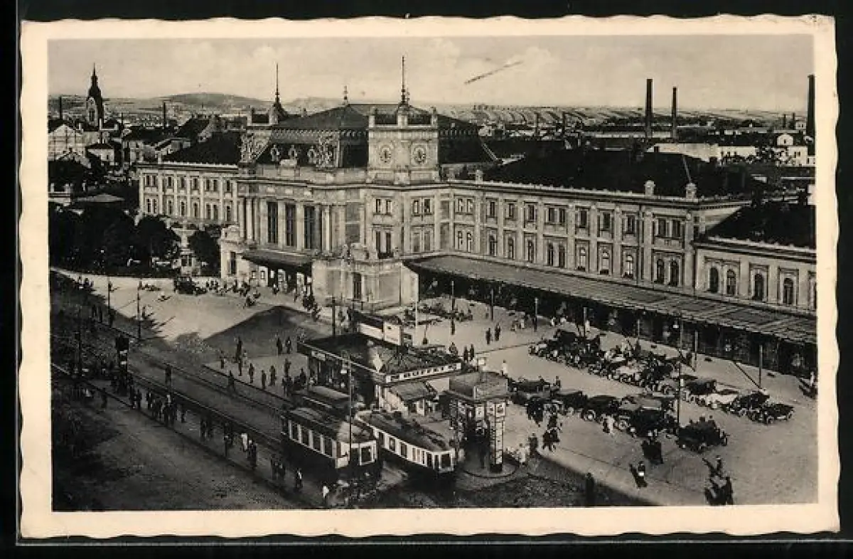 AK Brünn / Brno, Bahnhof, Strassenbahn
