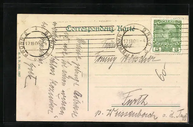 alte Ansichtskarte, gelaufen 1909, Stempelspur, guter Zustand