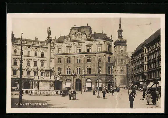 AK Brünn / Brno, Freiheitsplatz mit Denkmal