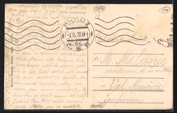 gelaufen 1920, Briefmarke entfernt, guter Zustand