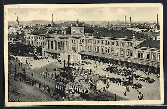 AK Brünn / Brno, Nádrazi, Bahnhof, Strassenbahn