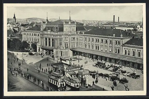 AK Brünn / Brno, Nádrazí, Motiv vom Bahnhof, Strassenbahn