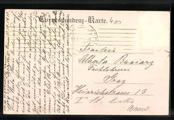 gelaufen 1910, Briefmarke entfernt, sonst guter Zustand