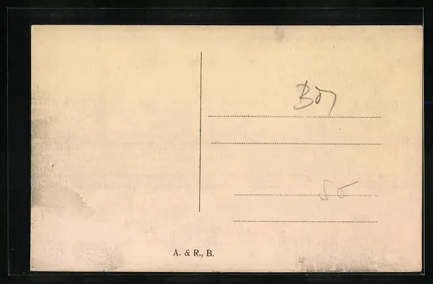 Personenbezogene Daten auf der Rückseite der Karte wurden durch blauen Textmarker unkenntlich gemacht. Die blauen Stellen sind auf die Vorderseite durchgeweicht und wirken sich negativ auf das Postkartenfoto aus