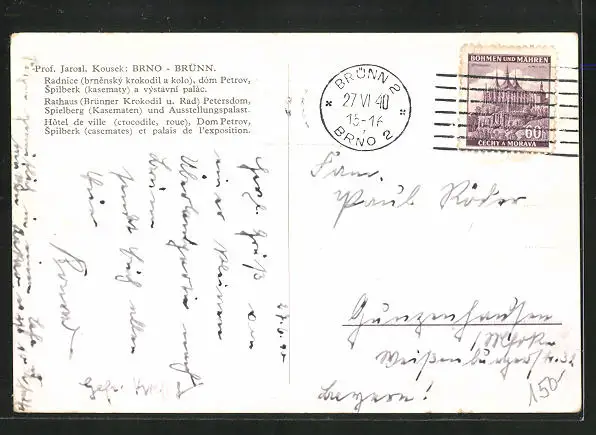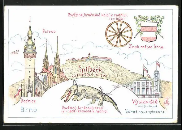 AK Brünn / Brno, Radnice, dóm Petrov, Spilberk a vystavni palác