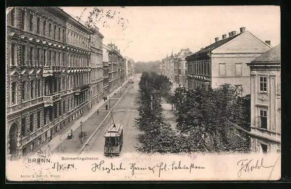 AK Brünn / Brno, Schmerlingstrasse mit Strassenbahn