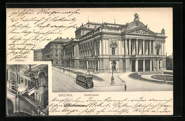 AK Brünn / Brno, Strassenbahn am Stadttheater