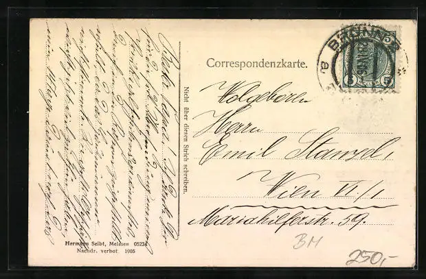 alte Ansichtskarte, gelaufen 1905, guter Zustand