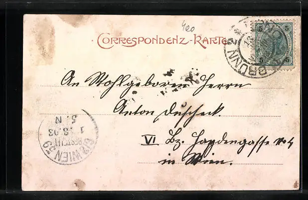 alte Ansichtskarte, gelaufen 1903, Stempelspur, guter Zustand
