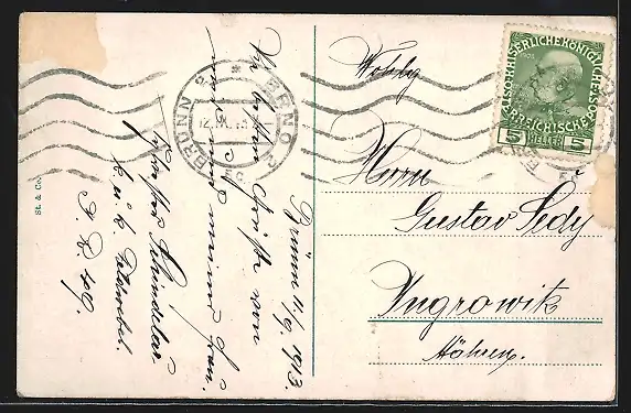alte Ansichtskarte, gelaufen 1913, Stempelspur, guter Zustand